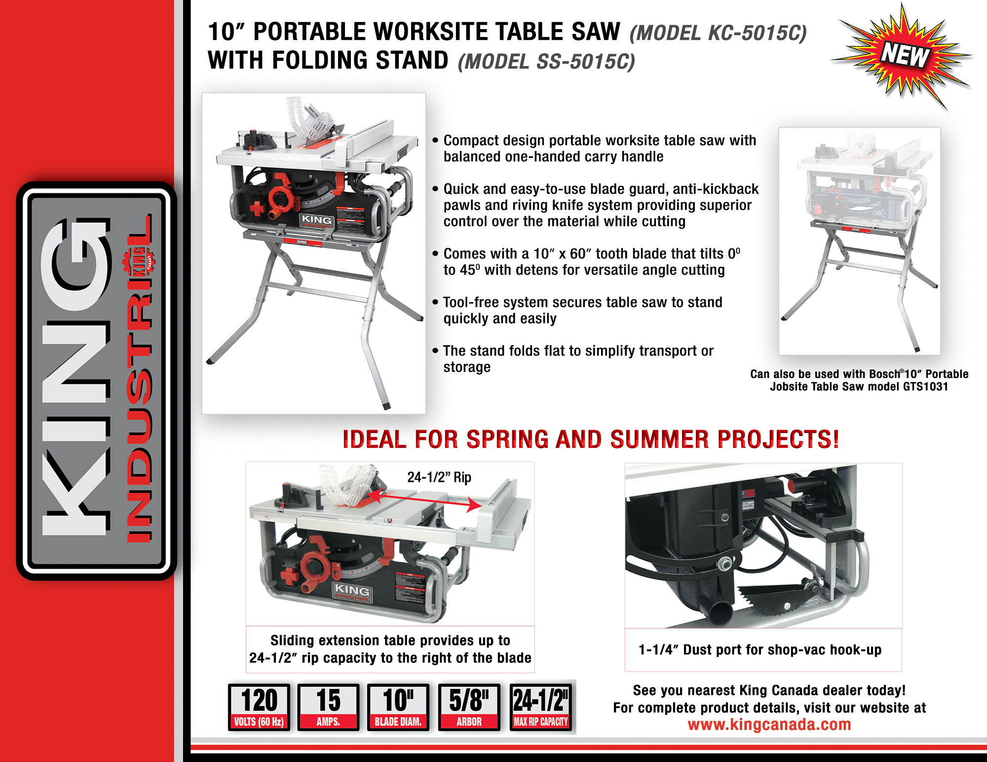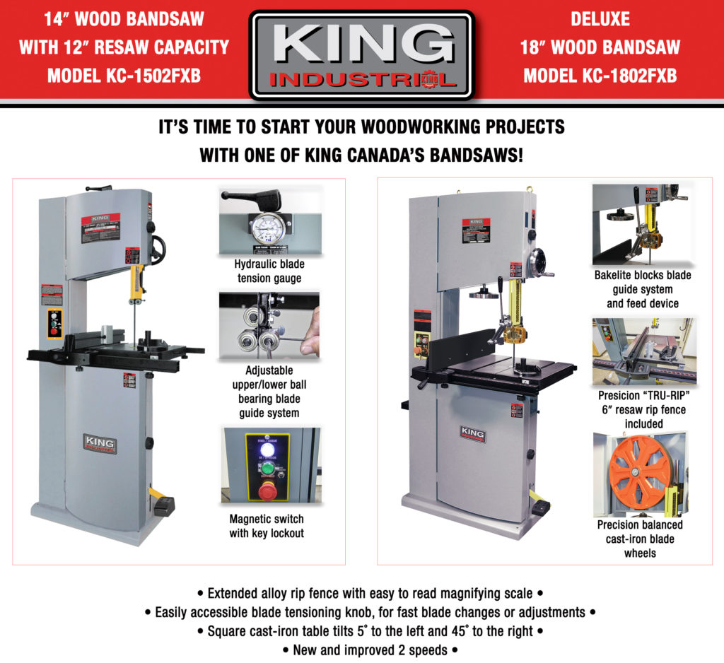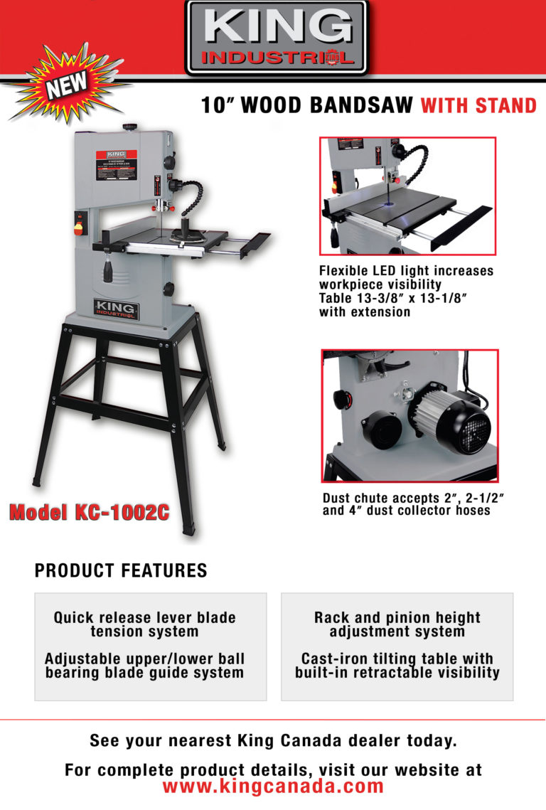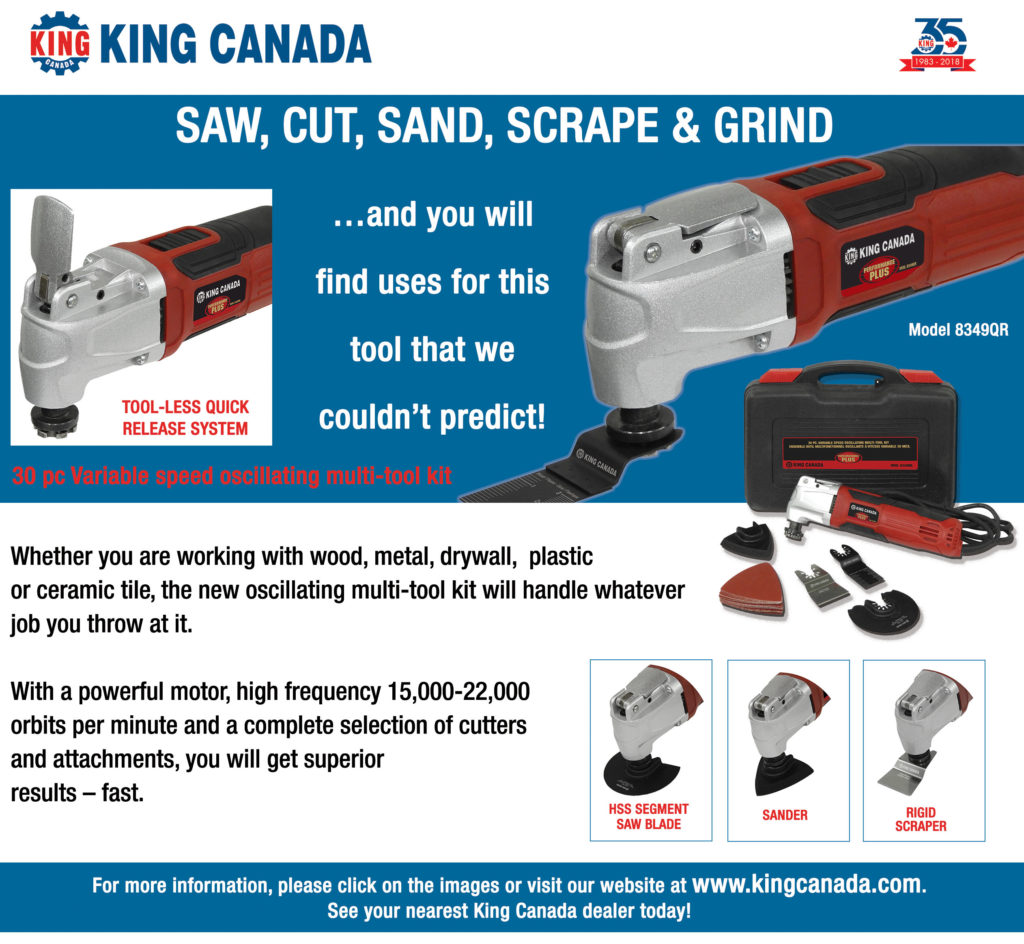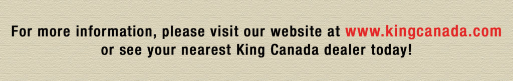 King Canada Inc. has been bringing quality machinery, tools and equipment to the North American market for nearly 40 years. King Canada Inc. is Canada’s leading distributor of woodworking, metalworking, automotive and material handling machinery, tools, equipment and accessories. King Canada Inc. offers innovative products to commercial industries and institutions, as well as to homeowners and professional trades. Our goal and commitment: To constantly strive to introduce new, innovative and exclusive products offering great value in each category, which provide our customers with products and solutions that meet their highest expectations.