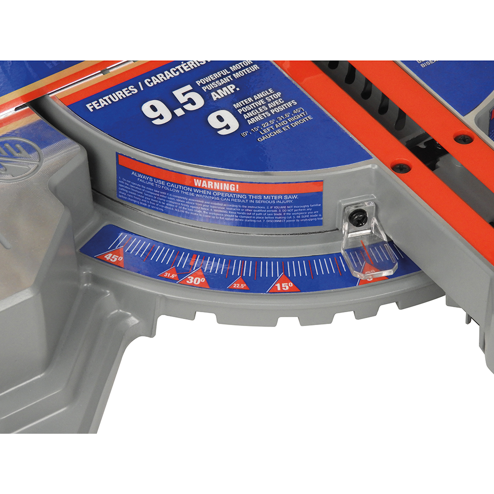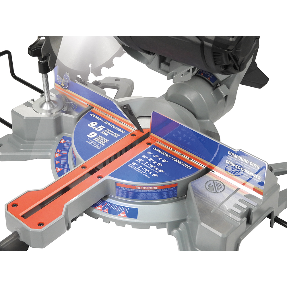 - Compound capacity 45° bevel 45° miter (H x W)1-1/2” x 6”