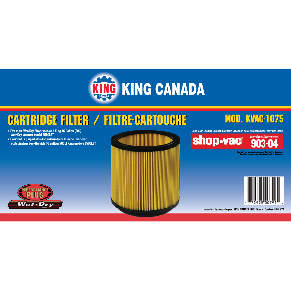 • Equivalent to Shop-Vac cartridge filter model 903-04