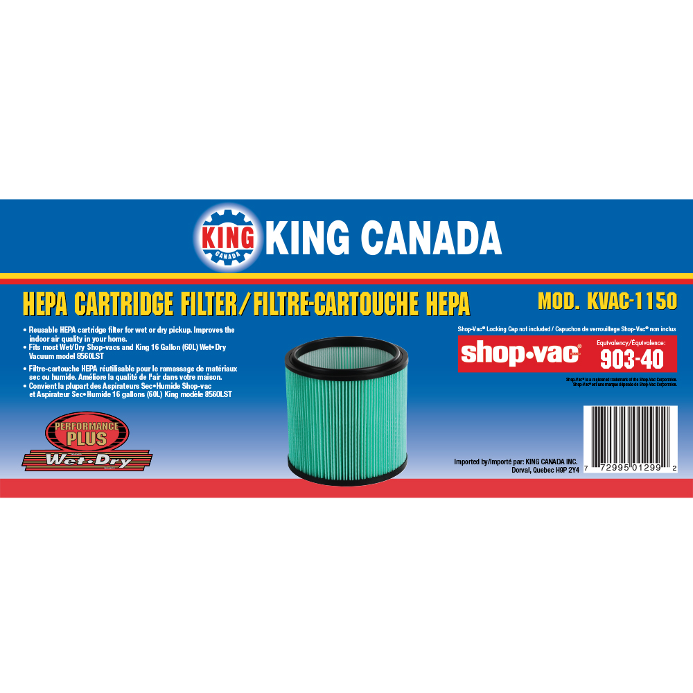 • Equivalent to Shop-Vac HEPA cartridge filter model 903-40
