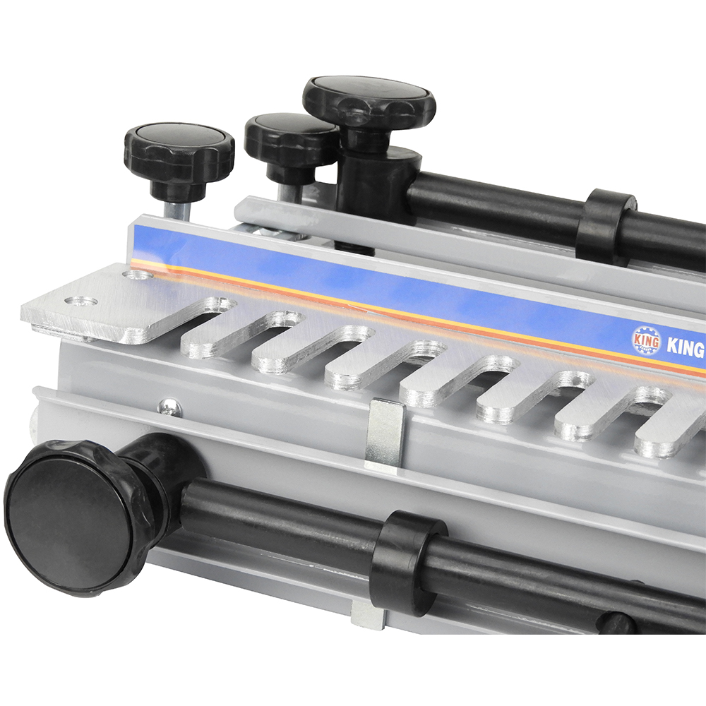 • Effectue des tenons de tiroirs demi-joint de 1/2" en une seule passe de toupie