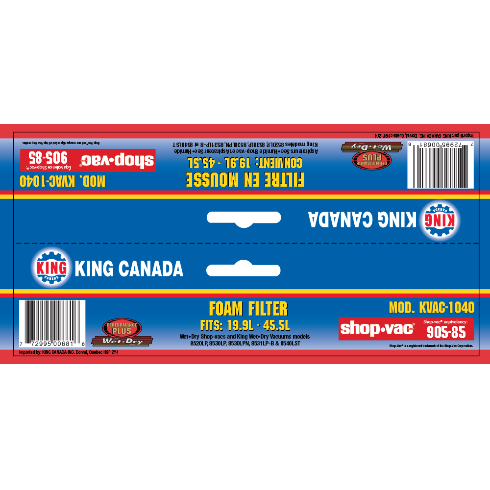 • Équivalent à manchon de filtre Shop-Vac modèle 905-85
