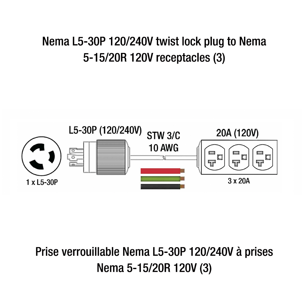 - Jauge de la rallonge (AWG)10 (STW 3/C)
