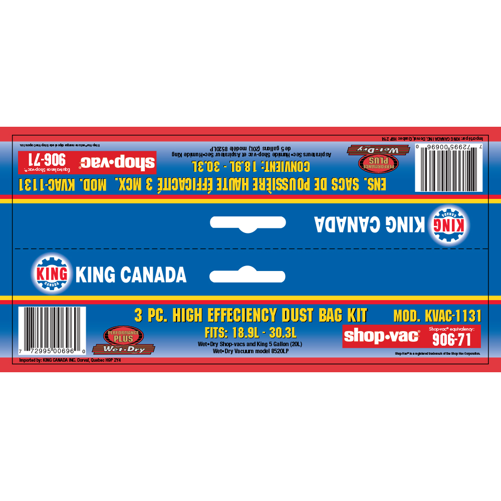 • Équivalent à sac filtre jetable Shop-Vac modèle 906-71